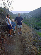 Om turen: Siri og Arne stakk fra ungene og dro av gårde for virkelig å gå på. Dette var en 15 mile tur med bra stigning (knapt 600 meter). Etter litt feilkjøring og feilgang kom vi inn på en fin sti langs en rygg innover en dal ovenfor Pearl Harbor. Det var en lang tur. Mye frukt, bl.a. jordbær-guava og vanlig guava, samt endel vi ikke kjente (sannsynligvis kart av avocado og mango), senket tempoet vårt i perioder.